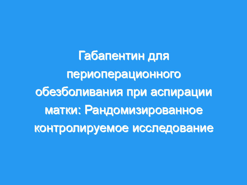 Добавление габапентина к обычным пероральным схемам обезболивания с парацервикальной блокадой не привело к уменьшите послеоперационную боль у пациентов, перенесших амбулаторный хирургический аборт. Хотя добавление габапентина хорошо переносилось и уменьшало пероральное употребление опиатов через 24 часа после процедуры, это не повлияло на ощущение боли во время и сразу после процедуры. Регистрация клинических испытаний: ClinicalTrials.gov , NCT02725710.
