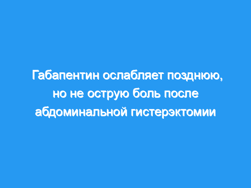 Габапентин не влияет на непосредственную боль после абдоминальной гистерэктомии, но уменьшает боль через 1 месяц после операции.