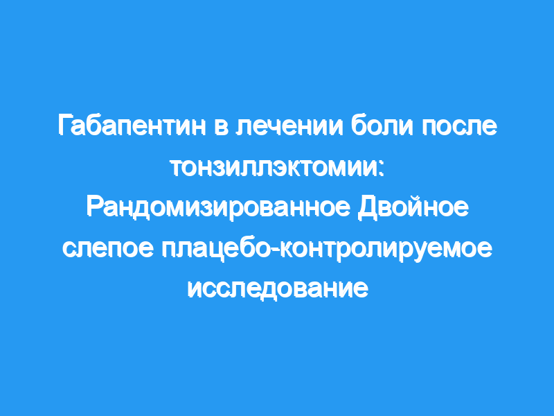Цель Определить, снижает ли однократная доза перорального габапентина, введенная до тонзиллэктомии, послеоперационную заболеваемость.