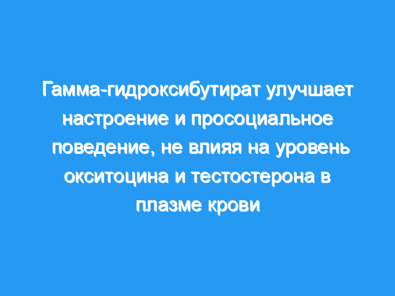 GHB оказывает повышающее настроение и просоциальное действие, не влияя на социальные гормоны, такие как окситоцин и тестостерон.