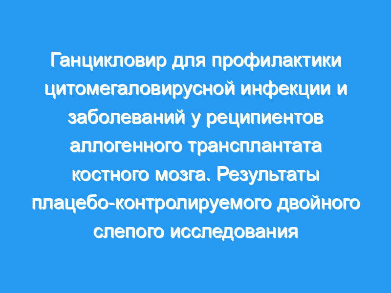 Оценить эффективность и безопасность ганцикловира для профилактики цитомегаловирусной (ЦМВ) инфекции и заболеваний. Дизайн: Рандомизированное, плацебо-контролируемое, двойное слепое исследование.