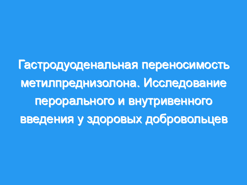 Для эндоскопической оценки толерантности слизистой оболочки гастродуоденальной полости к метилпреднизолону, вводимому перорально и внутривенно. Тридцать два здоровых добровольца (возрастной диапазон 18-39 лет) были случайным образом разделены на две группы по 16 человек в каждой (8 мужчин и 8 женщин). Все они были европеоидами, дали свое информированное согласие и были признаны нормальными после полного клинического и лабораторного обследования, включая гастродуоденальную фиброскопию. Метилпреднизолон (500 мг) вводили в течение трех дней подряд в 9 часов утра, перорально в одной группе и внутривенно во второй группе. Никаких других наркотиков не принималось, а алкоголь и курение были запрещены с 0-го по 11-й день. Переносимость оценивали на 4-й и 11-й дни на основании клинического обследования, артериального давления, частоты сердечных сокращений, температуры полости рта, массы тела, химического состава крови и мочи, а также с помощью видеозаписи гастродуоденальной эндоскопии. Два независимых эндоскописта, не осведомленные о режиме пациента, оценили поражения от 0 (в норме) до 5 (более 25 поражений, включая по крайней мере 2 эрозии). В случае аномальных результатов наблюдение продолжалось до нормализации.