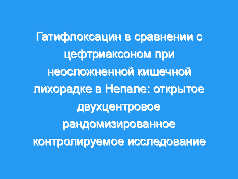 Мы провели открытое рандомизированное контролируемое клиническое исследование в двух больницах в долине Катманду, Непал. Приемлемыми участниками были дети (в возрасте 2-13 лет) и взрослые (в возрасте 14-45 лет) с критериями подозрения на кишечную лихорадку (температура тела ≥38·0°C в течение ≥4 дней без очага инфекции). Мы случайным образом распределили подходящих пациентов (1:1) без стратификации на 7 дней перорального приема гатифлоксацина (10 мг/кг в день) или внутривенного введения цефтриаксона (60 мг/кг до 2 г в день для пациентов в возрасте 2-13 лет или 2 г в день для пациентов в возрасте ≥14 лет). Список рандомизации был сгенерирован компьютером с использованием блоков по четыре и шесть. Первичным исходом была комбинация неудачного лечения, определяемая как возникновение по крайней мере одного из следующих: время исчезновения лихорадки более 7 дней после начала лечения, необходимость экстренного лечения на 8-й день, микробиологическая недостаточность (т.е. посевы крови, положительные на Salmonella enterica серотипа Typhi или Paratyphi A, B или C) на 8-й день, или рецидив или осложнения, связанные с заболеванием, в течение 28 дней после начала лечения. Мы провели анализы в модифицированной популяции с намерением лечить и субпопуляциях с подтвержденным положительным результатом посева крови или отрицательным результатом посева крови. В ходе испытания было обнаружено увеличение риска неудачи на 20%. Это испытание было зарегистрировано на ClinicalTrials.gov , номер NCT01421693, и в настоящее время закрыт. Результаты: В период с 18 сентября 2011 года по 14 июля 2014 года мы провели скрининг 725 пациентов на предмет соответствия критериям. 14 июля 2014 года совет по безопасности и мониторингу данных досрочно прекратил исследование из-за появления штаммов S. Typhi с высокой устойчивостью к ципрофлоксацину и гатифлоксацину. На данный момент 239 человек находились в группе с измененным намерением к лечению (120 назначили гатифлоксацин, 119 — цефтриаксон). У 18 (15%) пациентов, получавших гатифлоксацин, лечение было неэффективным, по сравнению с 19 (16%), получавшими цефтриаксон (отношение рисков [ОР] 1·04 [95% ДИ 0·55-1·98 ], p=0·91). В популяции, подтвержденной посевом, 16 (26%) из 62 пациентов, получавших гатифлоксацин, не смогли пройти лечение, по сравнению с четырьмя (7%) из 54, получавших цефтриаксон (ОР 0·24 [95% ДИ 0·08-0·73 ], p=0·01). Неудача лечения была связана с появлением S. Typhi, проявляющего резистентность к фторхинолонам, что потребовало прекращения исследования. Напротив, у пациентов с отрицательным посевом крови только двое (3%) из 58, получавших гатифлоксацин, потерпели неудачу в лечении по сравнению с 15 (23%) из 65, получавших цефтриаксон (ОР 7·50 [95% ДИ 1·71-32·80 ], p=0·01). Аналогичное количество несерьезных нежелательных явлений произошло в каждой группе лечения, и никаких серьезных событий зарегистрировано не было. Интерпретация: Наши результаты показывают, что фторхинолоны больше не следует использовать для лечения кишечной лихорадки в Непале. Кроме того, в условиях нашего исследования цефтриаксон был неоптимальным у высокой доли пациентов с культурально-отрицательной кишечной лихорадкой. Поскольку противомикробные препараты, в частности фторхинолоны, являются одними из единственных регулярно используемых мер борьбы с кишечной лихорадкой, оценка новых методов диагностики, новых вариантов лечения, а также использ