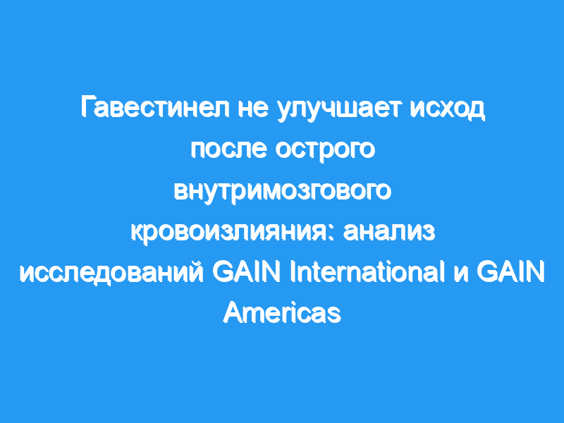 Эти наблюдения, полученные в ходе комбинированных исследований GAIN International и GAIN Americas, свидетельствуют о том, что гавестинел не приносит существенной пользы или вреда пациентам с первичным внутримозговым кровоизлиянием. Эти результаты аналогичны результатам, ранее сообщенным у пациентов с ишемическим инсультом.