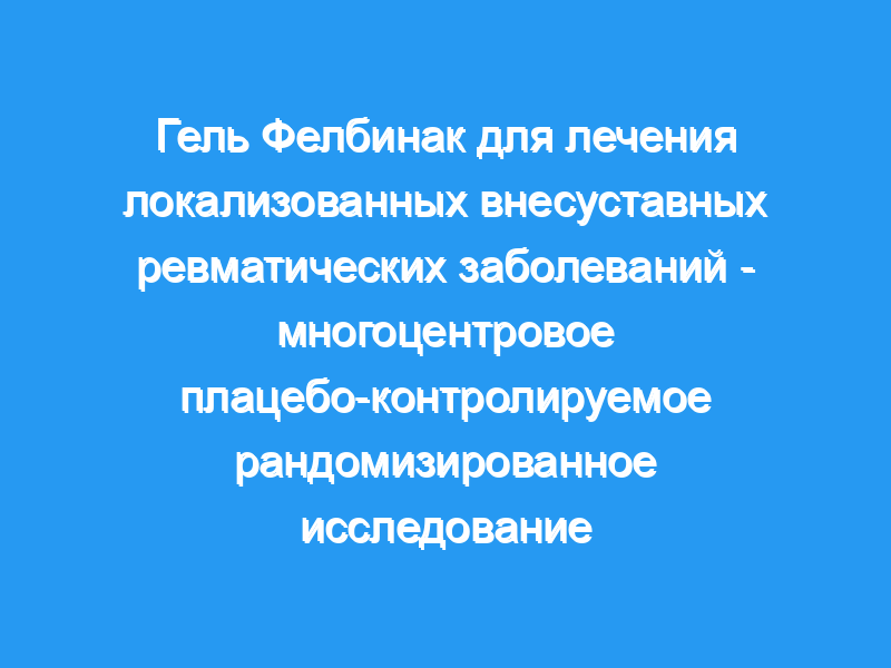 281 пациент с внесуставными ревматическими расстройствами (энтезиопатией, бурситом, тендинозом, фиброзитом) и умеренной или сильной локализованной болью во время отдыха или движения в плече, шее, локте или колене был рандомизирован на группы и лечился в течение 14 дней в двойном слепом исследовании либо 1 г геля Felbinac 3% (бифенилуксусная кислота) три раза в день (N = 142) или только в виде геля (N = 139). У 50% пациентов, получавших гель Фелбинак, по сравнению с 29% пациентов, получавших плацебо (р = 0,001), исследователь оценил общий терапевтический успех как хороший или очень хороший.