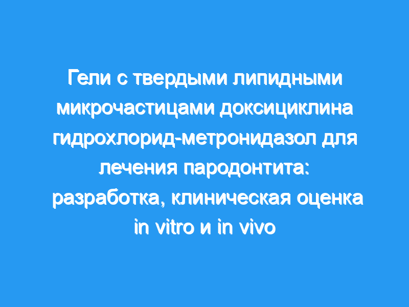 Разработанный гель SLMs предлагает подходящую лекарственную форму, которую можно вводить непосредственно в пародонтальный карман в качестве дополнения к удалению чешуек и строганию корней.