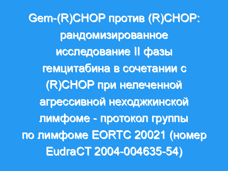 Мы провели рандомизированное исследование II фазы добавления гемцитабина к стандартной химиотерапии CHOP с ритуксимабом или без него [(R)CHOP]. Исследование было также разработано для определения максимально переносимой дозы (MTD) гемцитабина в этой комбинации. Пациенты с ранее нелеченной агрессивной НХЛ были рандомизированы для получения либо восьми циклов (R)CHOP каждые 3 недели, либо (R)CHOP в сочетании с гемцитабином [Gem-(R)CHOP].