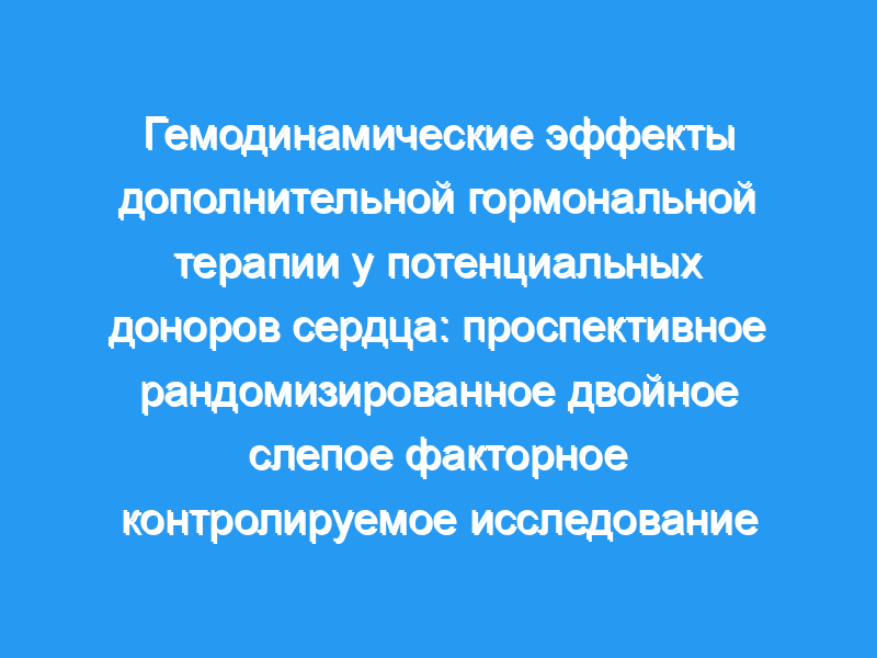 Целью данного исследования была оценка гемодинамических эффектов трийодтиронина (Т3) и метилпреднизолона у потенциальных доноров сердца. Методы и результаты: В проспективном рандомизированном двойном слепом исследовании 80 потенциальных доноров сердца были распределены для получения Т3 (0,8 мкг кг(-1) болюсно, 0,113 мкг кг (-1) ч(-1) инфузии) (n = 20), метилпреднизолона (1000 мг болюсно) (n = 19), оба препарата (n = 20) или плацебо (n = 21) после первоначальной оценки гемодинамики. После введения гормонов или плацебо была начата оптимизация сердечного выброса, направленная на использование вазопрессина в качестве прессора и выведение норадреналина и инотропов. Лечение проводилось для 5.9 +/- 1.3 h до получения или окончательной оценки. Сердечный индекс значительно увеличился (P <, 0,001), но введение Т3 и метилпреднизолона отдельно или в комбинации не влияло на это изменение или частоту сердечных сокращений. Тридцать пять процентов (14/40) изначально маргинальных или дисфункциональных сердец были пригодны для трансплантации при конечной оценке. При окончательной оценке 50% донорских сердец соответствовали критериям пригодности для трансплантации.