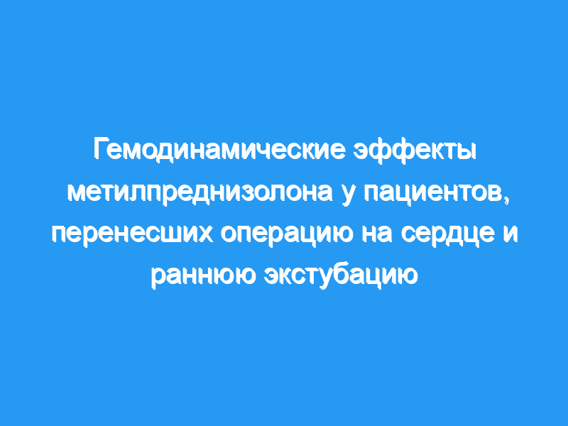 Вопрос о том, полезен ли метилпреднизолон во время операции на сердце, остается спорным. В этом исследовании изучается влияние препарата на активацию комплемента и гемодинамику у пациентов, перенесших операцию на сердце и раннюю экстубацию.
