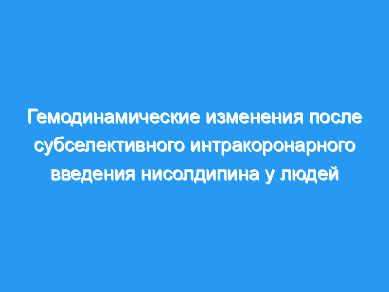Гемодинамические изменения после субселективного интракоронарного введения 50 мкг нисолдипина были проанализированы в 24 нестенотических коронарных артериях с использованием рандомизированного плацебо-контролируемого двойного слепого протокола.
