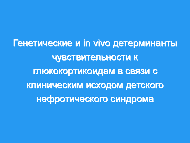 Здесь, в проспективной, четко определенной когорте детей с нефротическим синдромом, мы оценили как носительство гаплотипов GR-9β+TthIII-1 и BclI у 113 детей, так и тест на подавление дексаметазона. у 90 детей в зависимости от их клинического исхода в течение медианы наблюдения 4,4 года.