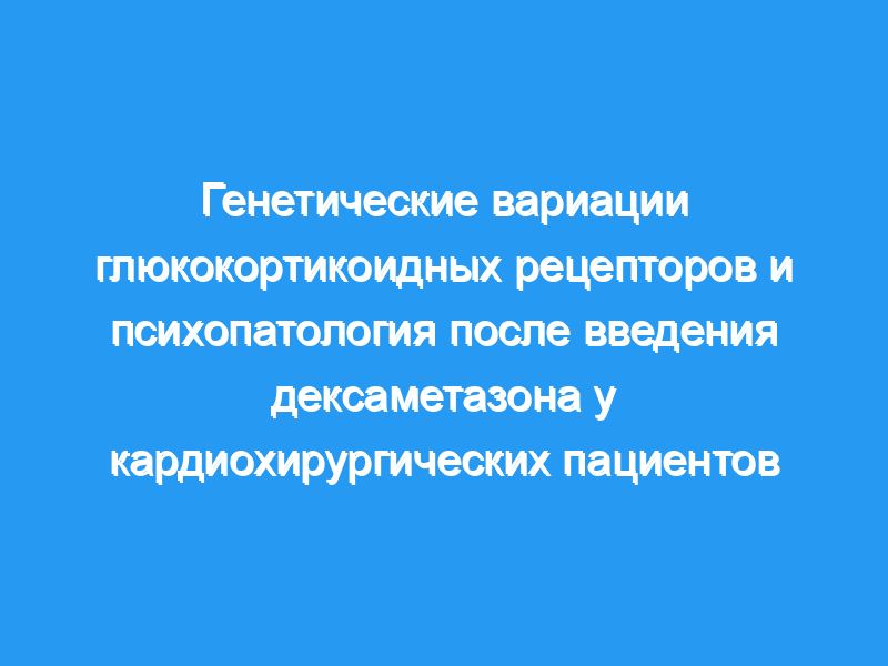 Защитные эффекты дексаметазона на симптомы ПТСР после кардиохирургических операций и пребывания в отделении интенсивной терапии, по-видимому, зависят от общих генетических вариаций в его рецепторе-мишени, GR. Эти эффекты указывают на то, что предоперационный генетический скрининг потенциально может помочь в стратификации пациентов на предмет их уязвимости к развитию симптомов ПТСР после операции.