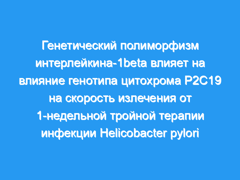 Генетический полиморфизм IL-1beta, хотя и не является независимым фактором в исходе лечения, влияет на влияние генотипа CYP2C19 на частоту излечения от тройной терапии H. pylori в течение 1 недели.