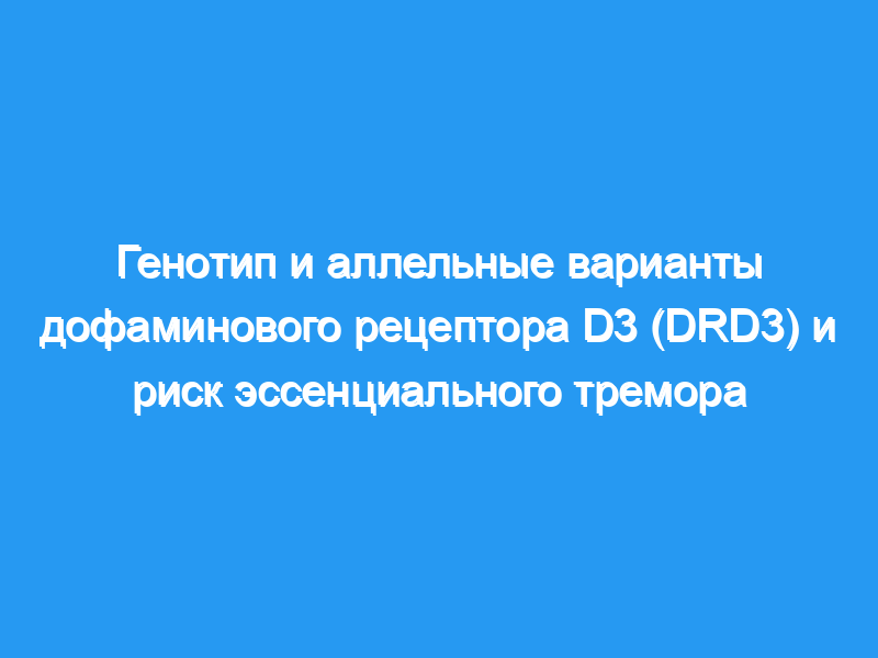Исследовать возможную связь между генотипом D3 рецептора дофамина (DRD3) и аллельными вариантами и риском развития эссенциального тремора (ET). Лейкоцитарная ДНК 201 пациента с ЭТ и 282 здоровых контрольных групп была изучена на генотип DRD3 и наличие аллельных вариантов DRD3 с использованием аллель-специфической ПЦР-амплификации и анализа MslI-RFLP.