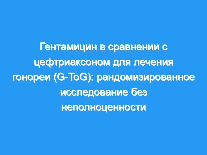G-ToG представляло собой многоцентровое, прагматичное, рандомизированное исследование с параллельными группами, в котором сравнивалось лечение гентамицином с лечением цефтриаксоном у пациентов с гонореей. Пациенты, лечащий врач и оценивающий врач были замаскированы для лечения, но лечащая медсестра — нет. Испытание проходило в 14 клиниках сексуального здоровья в Англии. Взрослые в возрасте от 16 до 70 лет имели право на участие, если у них был диагноз неосложненной генитальной, глоточной или ректальной гонореи. Участники были рандомизированы для получения однократной внутримышечной дозы либо гентамицина 240 мг (группа гентамицина), либо цефтриаксона 500 мг (группа цефтриаксона). Все участники также получали однократную дозу азитромицина перорально в дозе 1 г. Рандомизация (1:1) была стратифицирована по клиникам и проводилась с использованием защищенной веб-системы. Первичным результатом было очищение от Neisseria gonorrhoeae во всех первоначально инфицированных участках, определяемое как отрицательный тест на амплификацию нуклеиновых кислот через 2 недели после лечения. Первичный анализ результатов включал только участников, у которых были данные о последующем наблюдении, независимо от исходного визита и результата теста на гонорею. Маржа, используемая для установления неполноценности, представляла собой нижний доверительный предел в 5% для разницы в риске. Эта пробная версия зарегистрирована в ISRCTN, номер ISRCTN51783227. Выводы: Из 1762 обследованных пациентов мы включили 720 участников в период с 7 октября 2014 года по 14 ноября 2016 года и случайным образом распределили 358 на гентамицин и 362 на цефтриаксон. Первичные данные о результатах были доступны для 306 (85%) из 362 участников, получавших цефтриаксон, и 292 (82%) из 358 участников, получавших гентамицин. Через 2 недели после лечения инфекция прошла у 299 (98%) из 306 участников в группе цефтриаксона по сравнению с 267 (91%) из 292 участников в группе гентамицина (скорректированная разница в риске -6,4%, 95% ДИ -10,4% -2,4%). Из 328 участников, у которых была генитальная инфекция, 151 (98%) из 154 в группе цефтриаксона и 163 (94%) из 174 в группе гентамицина имели клиренс при последующем наблюдении (скорректированная разница в риске -4·4%, -8·7 к 0). У большей части участников с инфекцией глотки, получавших цефтриаксон, клиренс был достигнут при последующем наблюдении (108 [96%] в группе цефтриаксона по сравнению с 82 [80%] в группе гентамицина, скорректированная разница в риске -15·3%, от -24·0 до -6·5). Аналогичным образом, большая доля участников с ректальной инфекцией в группе цефтриаксона имела клиренс (134 [98%] в группе цефтриаксона по сравнению со 107 [90%] в группе гентамицина, скорректированная разница в риске -7·8%, от -13·6 до -2·0). Таким образом, мы не обнаружили, что однократная доза гентамицина 240 мг не уступала однократной дозе цефтриаксона 500 мг для лечения гонореи, когда оба препарата сочетались с дозой азитромицина перорально в 1 г. Профили побочных эффектов были одинаковыми между группами, хотя тяжесть боли в месте инъекции была выше для гентамицина (средний визуальный аналоговый показатель боли 36 из 100 в группе гентамицина против 21 из 100 в группе цефтриаксона). Интерпретация: Гентамицин не подходит в качестве первой линии лечения гонореи, но остается потенциально полезным для пациентов с изолированной генитальной инфекцией или для пациентов с аллер