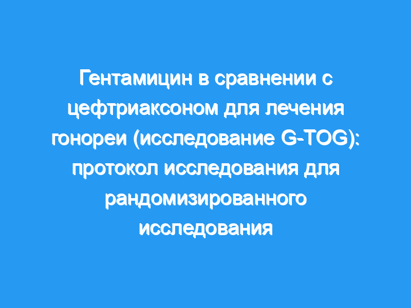 Возможности для будущего лечения гонореи ограничены. Результаты этого рандомизированного исследования продемонстрируют, не хуже ли гентамицин клинически, чем цефтриаксон, для лечения гонореи. Это послужит основой для клинической практики и политики лечения гонореи, когда текущая терапия цефалоспоринами больше не эффективна или противопоказана. Регистрация исследования: Международный стандартный номер рандомизированного контролируемого исследования — ISRCTN51783227 , Зарегистрирован 18 сентября 2014 года. Текущая версия протокола 2.0 17 июня 2015 года.