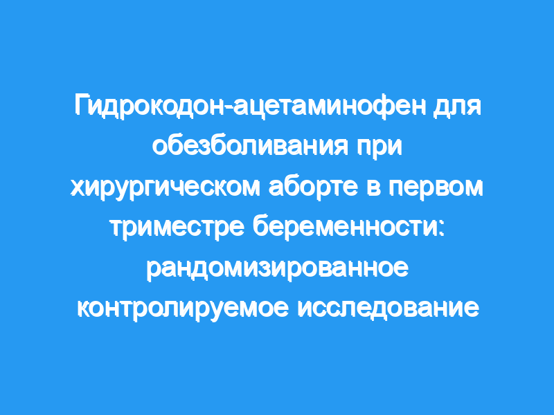 Гидрокодон-ацетаминофен не уменьшает боль во время аборта в первом триместре беременности и может усилить послеоперационную тошноту. Регистрация клинических испытаний: Clinicaltrials.gov , www.clinicaltrials.gov , NCT01330459. Уровень доказательности: I.