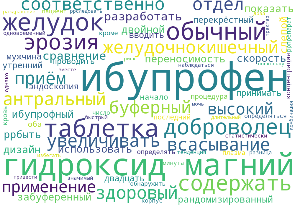 Был использован дизайн двойного слепого рандомизированного перекрестного исследования с 2 периодами. Двадцать здоровых мужчин принимали 800 мг ибупрофена 3 раза в день либо в обычных таблетках (2 дозы по 400 мг), либо в таблетках, содержащих гидроксид магния (2 дозы по 400 мг ибупрофена и 200 мг гидроксида магния). На 5-й день вводили только утреннюю дозу. Эндоскопию проводили в начале и на 5-й день обеих процедур через 2 часа после последней дозы, и определяли рН желудка. Кроме того, концентрации ибупрофена в плазме крови определялись до 90 минут.