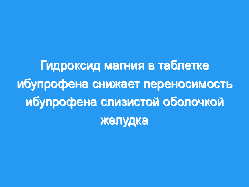 Препарат, содержащий гидроксид магния, увеличивал число пациентов с эрозиями в теле и антральном отделе желудка. В корпусе желудка у 2 и 7 добровольцев были эрозии после приема обычного и буферного ибупрофена соответственно (Р = 0,08). В антральном отделе желудка у 5 и 13 добровольцев были обнаружены эрозии после приема обычного и буферного ибупрофена соответственно (Р = 0,02). Наблюдалась тенденция к более быстрому всасыванию ибупрофена при одновременном применении с гидроксидом магния. Однако разница не была статистически значимой.