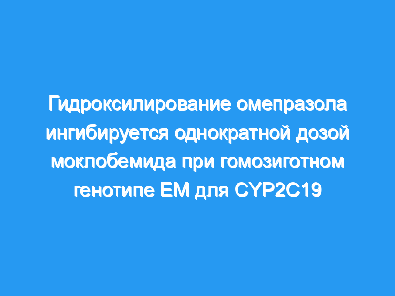 Шестнадцать добровольцев, из которых восемь были активными метаболизаторами (EM) и восемь были слабыми метаболизаторами CYP2C19, приняли участие в двух исследованиях. Образцы венозной крови отбирали в течение 24 ч после перорального приема 40 мг омепразола с одновременным приемом 300 мг моклобемида или без него. Для проверки взаимодействия между омепразолом и моклобемидом оценивали фармакокинетические изменения концентраций омепразола, сульфона омепразола и 5-гидроксиомепразола.