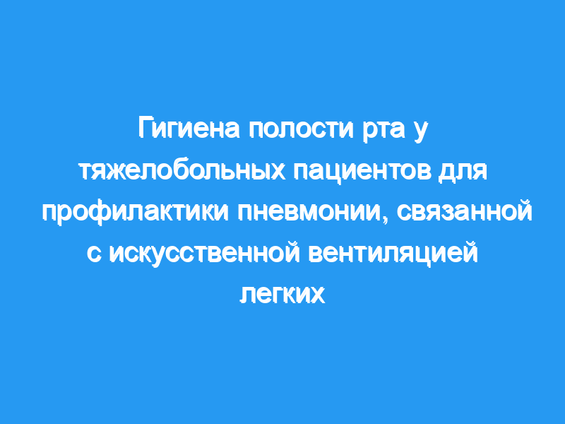 Оценить влияние гигиены полости рта (OHC) на частоту пневмонии, связанной с искусственной вентиляцией легких, у тяжелобольных пациентов, получающих искусственную вентиляцию легких в отделениях интенсивной терапии (ОИТ) больницы. Методы поиска: Специалист по информации Cochrane Oral Health провел поиск в следующих базах данных: Cochrane Oral Health’s Trials Register (до 25 февраля 2020 года), Cochrane Central Register of Controlled Trials (CENTRAL) (Библиотека Кокрейна, 2020 год, выпуск 1), MEDLINE Ovid (с 1946 по 25 февраля 2020 года), Embase Ovid (с 1980 по 25 февраля 2020 года), Виртуальная медицинская библиотека СИРЕНЕВОЙ БИРЕМЫ (с 1982 по 25 февраля 2020 года) и CINAHL EBSCO (с 1937 по 25 февраля 2020 года). Мы также провели поиск в базе данных VIP (с января 2012 года по 8 марта 2020 года). Реестр испытаний Национального института здравоохранения США (ClinicalTrials.gov ) и на платформе Регистрации международных клинических испытаний Всемирной организации здравоохранения был проведен поиск текущих испытаний. При поиске в электронных базах данных не было наложено никаких ограничений на язык или дату публикации. Критерии отбора: Мы включили рандомизированные контролируемые исследования (РКИ), оценивающие эффекты OHC (полоскание рта, гель, тампон, зубная щетка или комбинация) у тяжелобольных пациентов, получающих искусственную вентиляцию легких в течение не менее 48 часов. Сбор и анализ данных: По крайней мере, два автора обзора независимо оценивали результаты поиска, извлекали данные и оценивали риск предвзятости во включенных исследованиях. Мы связались с авторами исследования для получения дополнительной информации. Мы сообщили о соотношении рисков (RR) для дихотомических исходов и средней разнице (MD) для непрерывных исходов, используя модель случайных эффектов мета-анализа, когда данные из четырех или более исследований были объединены.