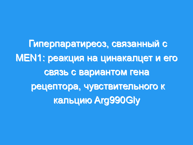 Это краткосрочное проспективное исследование продемонстрировало, что профиль эффективности цинакалцета у пациентов с PHPT, связанным с MEN1, и у пациентов с sPHPT был сходным и не зависел от варианта CASR 990. Несмотря на то, что требуются долгосрочные данные о безопасности и эффективности, цинакалцет может рассматриваться в качестве варианта лечения у пациентов MEN1, у которых есть противопоказания к хирургическому вмешательству или стойкая ПХПТ после операции.
