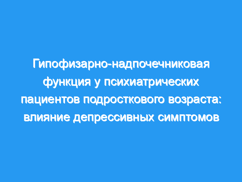 Целью этого исследования было определить, влияют ли депрессивные симптомы на функцию гипофиза и надпочечников у подростков так же, как и у взрослых.