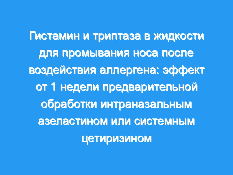 Целью этого исследования было определить влияние интраназального азеластина или системного цетиризина (оба мощных антигистаминных препарата) на индуцированное аллергеном высвобождение медиаторов тучных клеток из слизистой оболочки носа человека in vivo.