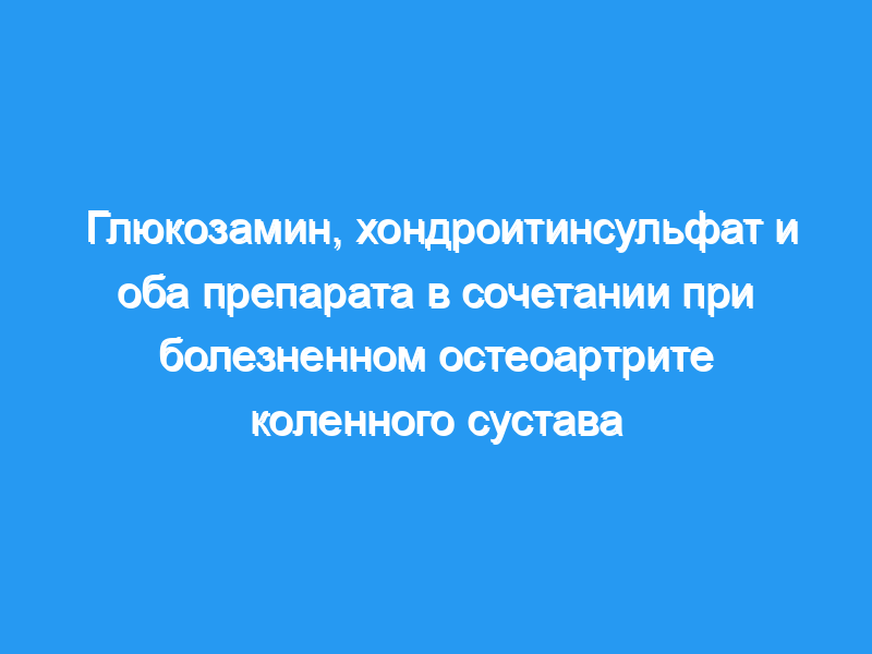 Глюкозамин и хондроитинсульфат по отдельности или в комбинации не уменьшали боль эффективно в общей группе пациентов с остеоартритом коленного сустава. Предварительные анализы показывают, что комбинация глюкозамина и хондроитинсульфата может быть эффективной в подгруппе пациентов с умеренной или сильной болью в колене. (ClinicalTrials.gov номер, NCT00032890.).