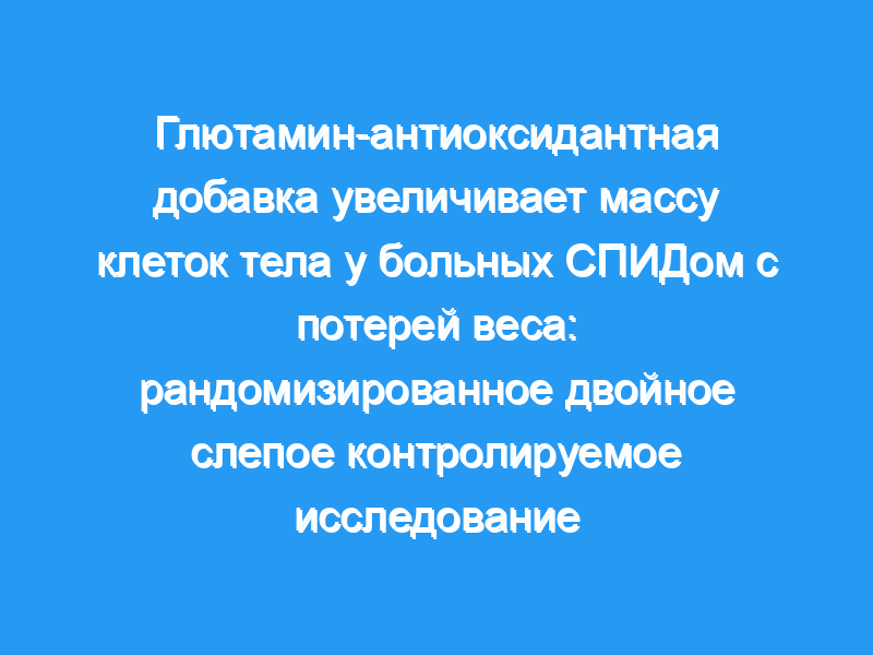 За 3 месяца группа GLN-антиоксидантов набрала 2,2 кг массы тела (3,2%), тогда как контрольная группа набрала 0,3 кг (0,4%, Р = 0,04 для разницы между группами). Группа GLN-антиоксидантов набрала 1,8 кг клеточной массы тела, тогда как контрольная группа набрала 0,4 кг (Р = 0,007). Внутриклеточное содержание воды увеличилось в группе GLN-антиоксидантов, но не в контрольной группе.