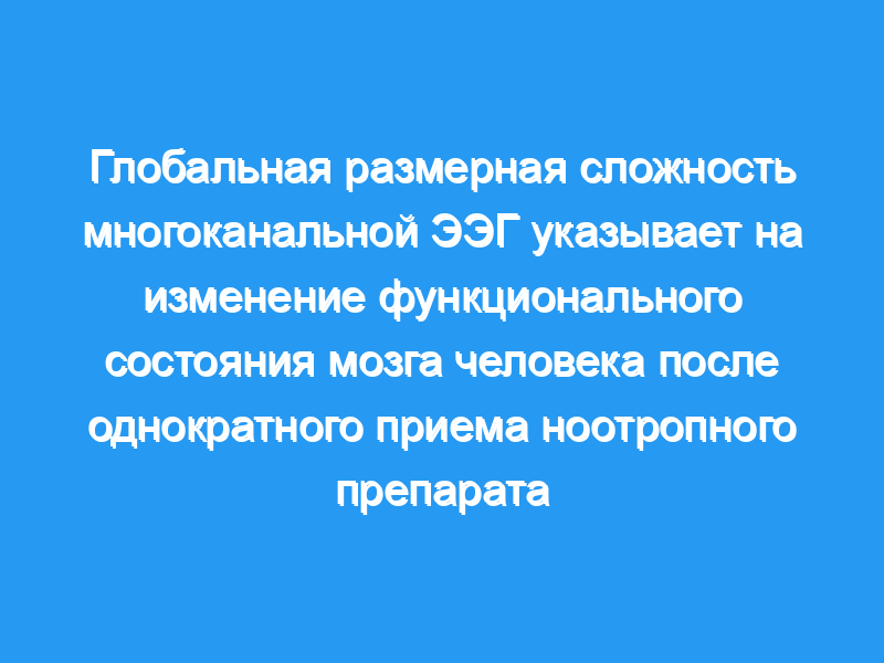 высокая и низкий против высокого dos.Таким образом, малозаметное изменение глобального функционального состояния мозга после однократной дозы пирацетама отражается нелинейной мерой глобальной размерной сложности многоканальной ЭЭГ.