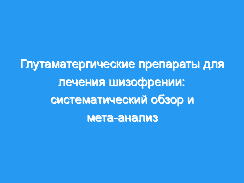 Оценить эффективность глутаматергических препаратов, действующих агонистически на N-метил-D-аспартат (NMDA) или не-NMDA-рецепторы, при шизофрении. Метод: Все соответствующие рандомизированные контролируемые исследования глутаматергических препаратов для лечения шизофрении были получены из Реестра исследований Кокрейновской группы по шизофрении без каких-либо языковых или годичных ограничений. Испытания были классифицированы в соответствии с их методологическим качеством. Для двоичных и непрерывных данных были рассчитаны относительные риски и взвешенные (WMD) или стандартизированные средние различия (SMD) соответственно.