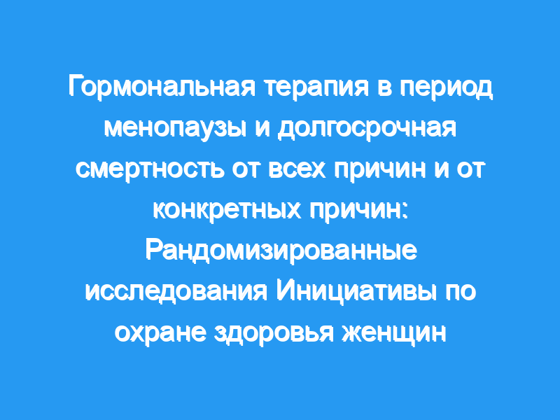 Важность: Сообщалось о результатах исследований, проведенных в рамках Инициативы по охране здоровья женщин «Эстроген плюс прогестин» и «Только эстроген», но предыдущие публикации, как правило, не касались смертности от всех причин и от конкретных причин.