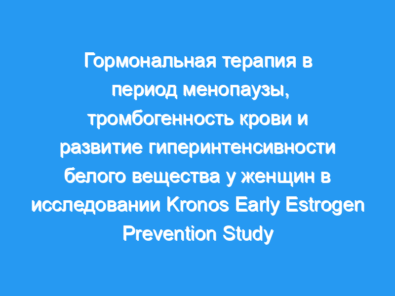 Развитие гиперинтенсивности белого вещества (WMH) в головном мозге связано с тромбогенностью крови у женщин, недавно вступивших в менопаузу. В этом исследовании изучалось влияние гормональной терапии в период менопаузы (MHTS) на эту ассоциацию.