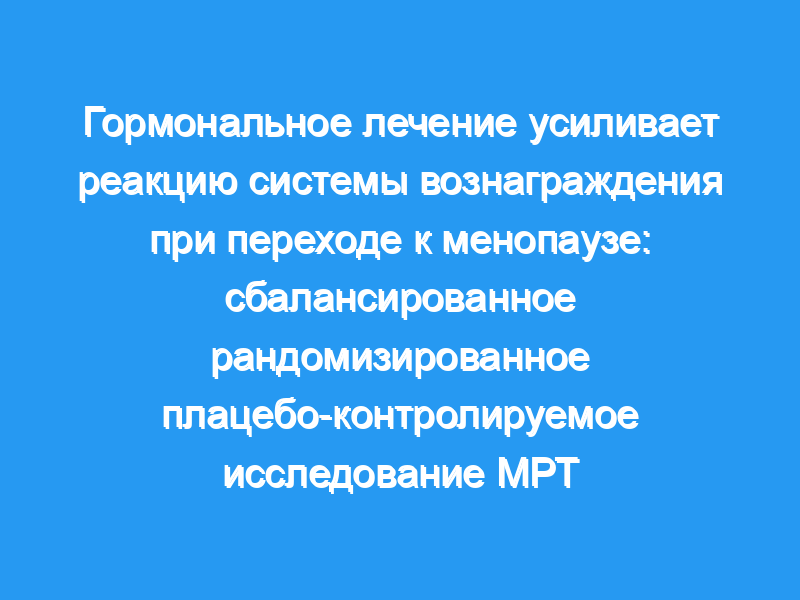 Эти результаты создают нейробиологическую основу для понимания нейрофункционального влияния раннего начала ГТ на обработку вознаграждения при переходе к менопаузе.