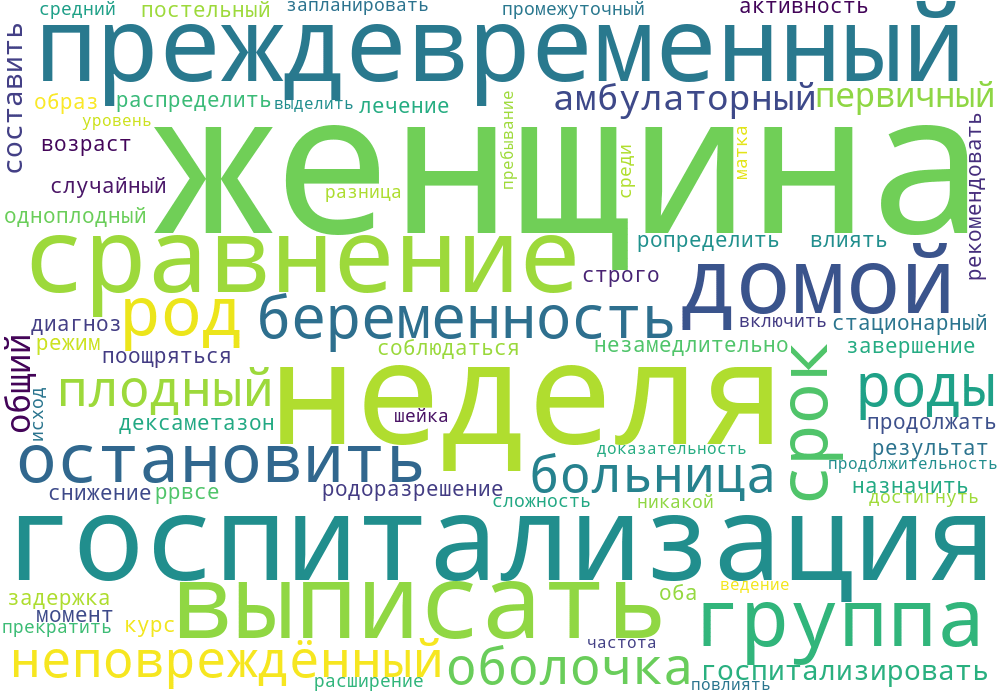 На момент промежуточного анализа в исследование была включена в общей сложности 101 женщина из запланированных 188. Не было никакой разницы в исходе первичного исследования между 2 группами, и исследование было прекращено. Среди госпитализированных женщин 71% достигли 36 недель или более, по сравнению с 72% тех, кто был выписан домой (Р = 0,89). Среднее расширение шейки матки у госпитализированных женщин составило 2.7 +/- 0.5 см, по сравнению с 2.6 +/- 0.5 см у женщин, выписанных домой (Р = 0,16). Общая продолжительность пребывания в больнице для женщин, выделенных на госпитализацию, составила 16 +/- 13 дней.