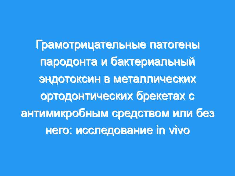 Высокий уровень патогенных микроорганизмов в пародонте может вызвать изменения в пародонте. Присутствие эндотоксина может быть ответственно за возникновение и прогрессирование воспаления тканей и резорбции кости. Целью этого исследования было использовать гибридизацию ДНК-ДНК в шахматном порядке и анализ лизата амебоцитов limulus для оценки в металлических ортодонтических брекетах (1) наличия 16 грамотрицательных пародонтальных патогенных микроорганизмов оранжевого комплекса и красного комплекса + Treponema socranskii, (2) количества бактериального эндотоксина и (3) эффективность 0,12% раствора для полоскания рта хлоргексидина глюконата в снижении бактериальной контаминации и количества эндотоксина.