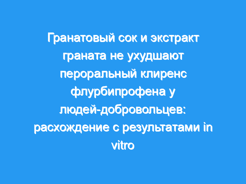 Гранатовый сок и 1-граммовая капсула, содержащая экстракт граната, были оценены in vitro и in vivo как ингибиторы цитохрома P450 2C9 (CYP2C9), причем флурбипрофен служил индексным субстратом..