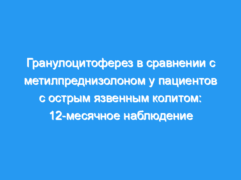 Мы включили 80 пациентов с ЯК. Активность заболевания оценивали по индексу клинической активности и эндоскопическому индексу. Пациенты были случайным образом разделены на две группы: группа А получала лечение GCAP в течение пяти сеансов (1 сеанс в неделю), группа В получала внутривенное или внутримышечное введение метилпреднизолона (MP). В обеих группах поддерживалась сопутствующая терапия пероральным приемом 5-аминосалициловой кислоты (5-АСК) в дозе 2,4 г/сут. Пациенты, достигшие ремиссии, находились под клиническим и эндоскопическим наблюдением в течение 12 месяцев после окончания GCAP или MP.