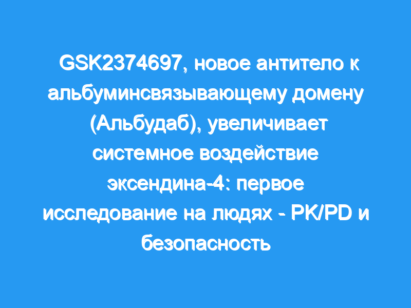 GSK2374697 представляет собой генетически модифицированный слитый белок человеческого доменного антитела к эксендину-4. Эта молекула связывается с высоким сродством к человеческому сывороточному альбумину, создавая агонист рецептора глюкагоноподобного пептида-1 (GLP-1) длительного действия.