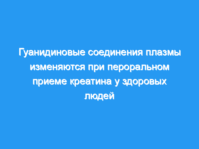 Для этой цели 16 здоровых молодых добровольцев были случайным образом разделены для приема двойным слепым методом либо моногидрата креатина, либо плацебо (мальтодекстрин) в дозе 20 г/сут в течение первой недели (фаза нагрузки) и 5 г/сут в течение 19 последующих недель (этап технического обслуживания). Образцы плазмы натощак отбирали в исходном состоянии и через 1, 10 и 20 недель приема добавок, и определяли гуанидиновые соединения.
