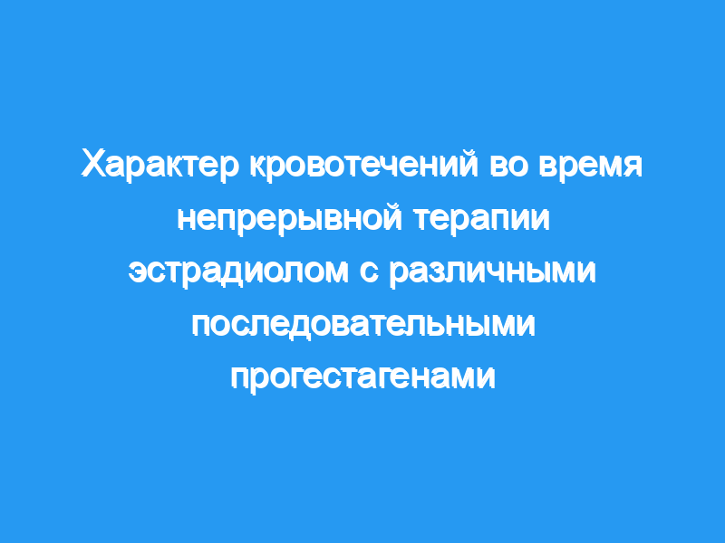 : Всего можно было оценить 937 циклов. В 690 циклах (73,6%) сообщалось о регулярных кровотечениях, связанных с прогестагеном. Среди других циклов мы наблюдали 73 эпизода аменореи (7,8%, каждый из которых длился один цикл), 78 эпизодов нерегулярных кровотечений (8,3%) и 96 эпизодов кровянистых выделений (10,2%). Пациенты, получавшие номегестрола ацетат, имели значительно более высокую частоту регулярных кровотечений, связанных с прогестагеном, по сравнению с теми, кто получал ацетат медроксипрогестерона или натуральный прогестерон, а у пациентов, получавших дидрогестерон, была значительно более высокая частота регулярных кровотечений, связанных с прогестагеном, по сравнению с теми, кто получал натуральный прогестерон.