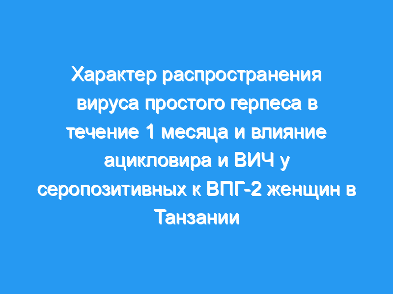 В нескольких исследованиях изучалась частота и продолжительность распространения вируса простого генитального герпеса (ВПГ) в странах Африки к югу от Сахары. В этом исследовании описываются модели выделения ВПГ среди выборки серопозитивных к ВПГ-2 женщин, включенных в плацебо-контролируемое исследование терапии, подавляющей ВПГ (ацикловир 400 мг два раза в день) в Танзании.