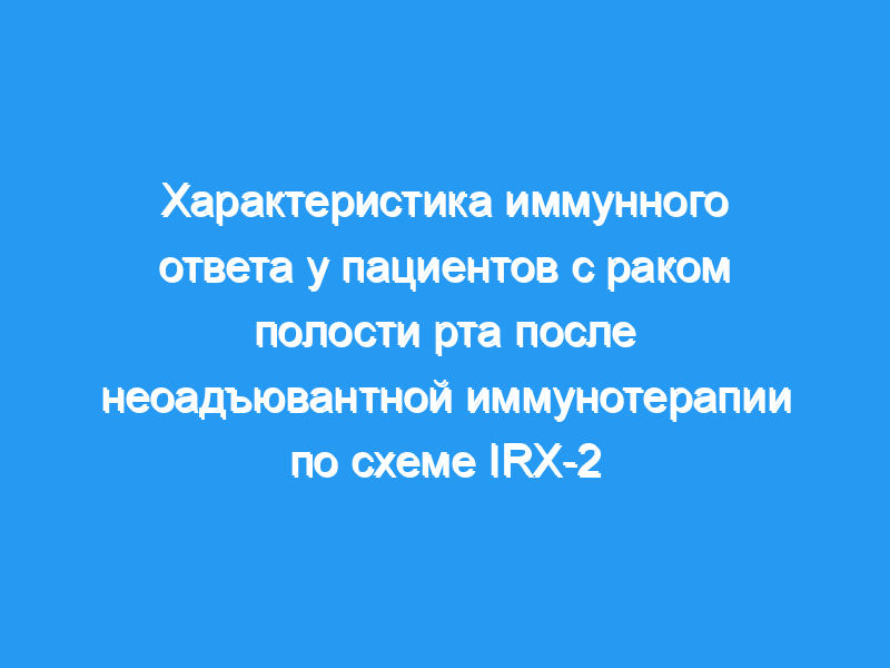 Было проведено рандомизированное исследование II фазы режима IRX за 3 недели до операции для ранее не лечившихся пациентов с карциномой полости рта II-IV стадии. Схема лечения состояла из низкой дозы (300 мг/м2) циклофосфамида (1-й день), за которой следовали 10-дневные регионарные перилимфатические инъекции цитокинов IRX-2 и ежедневные пероральные инъекции индометацина, цинка и омепразола (схема 1) по сравнению с идентичной схемой без цитокинов IRX-2 (схема 2). Для оценки экспрессии генов и сигнатур метилирования ДНК, соответственно, в образцах опухолей до и после иммунотерапии, были использованы NanoString immune panel (730 генов) и Infinium MethylationEPIC BeadChip.