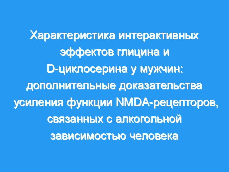 При этом была проверена гипотеза о том, что повышение концентрации глицина в мозге усилит антагонистические эффекты частичного агониста глицина(B), D-циклосерина. (DCS). Двадцать два мужчины, страдающие алкогольной зависимостью, и 22 здоровых человека завершили 4 дня тестирования, в течение которых внутривенно вводили глицин 0,3 г/кг или физиологический раствор, а перорально вводили DCS 1000 мг или плацебо.