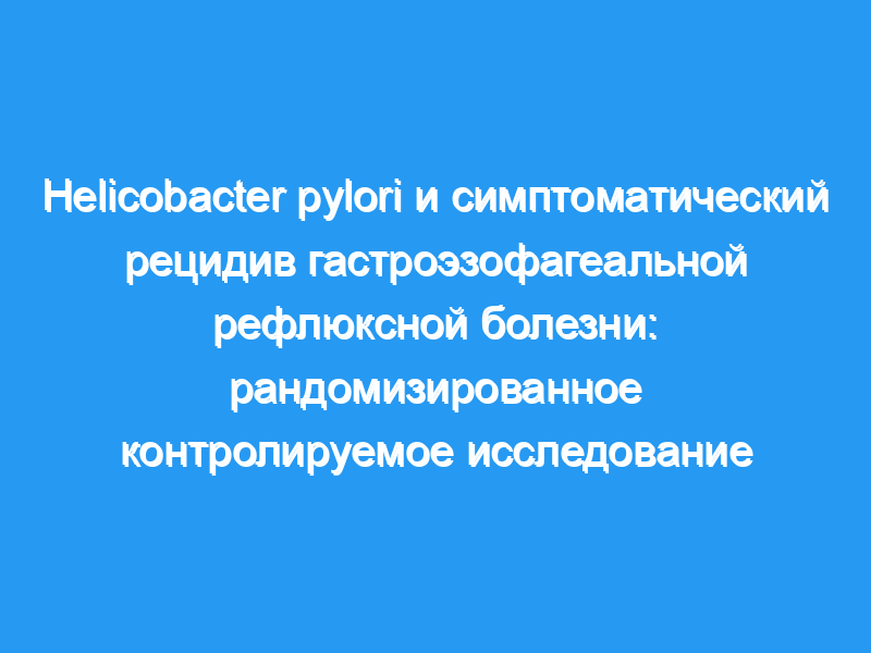 Существует мало информации о последствиях эрадикации Helicobacter pylori у пациентов с первичным диагнозом гастроэзофагеальной рефлюксной болезни (ГЭРБ). Нашей целью было изучить эффект эрадикации H. pylori у этой группы пациентов.