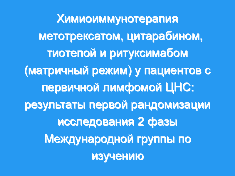 Стандартное лечение пациентов с первичной лимфомой ЦНС еще предстоит определить. Активная терапия часто связана с повышенным риском гематологической или неврологической токсичности. В этом исследовании мы рассмотрели переносимость и эффективность добавления ритуксимаба с тиотепой или без нее к комбинированной терапии метотрексат-цитарабин (схема MATRix), после чего была проведена вторая рандомизация, сравнивающая консолидацию с лучевой терапией всего мозга или трансплантацией аутологичных стволовых клеток у пациентов с первичной лимфомой ЦНС. В этой статье мы сообщаем о результатах первой рандомизации.