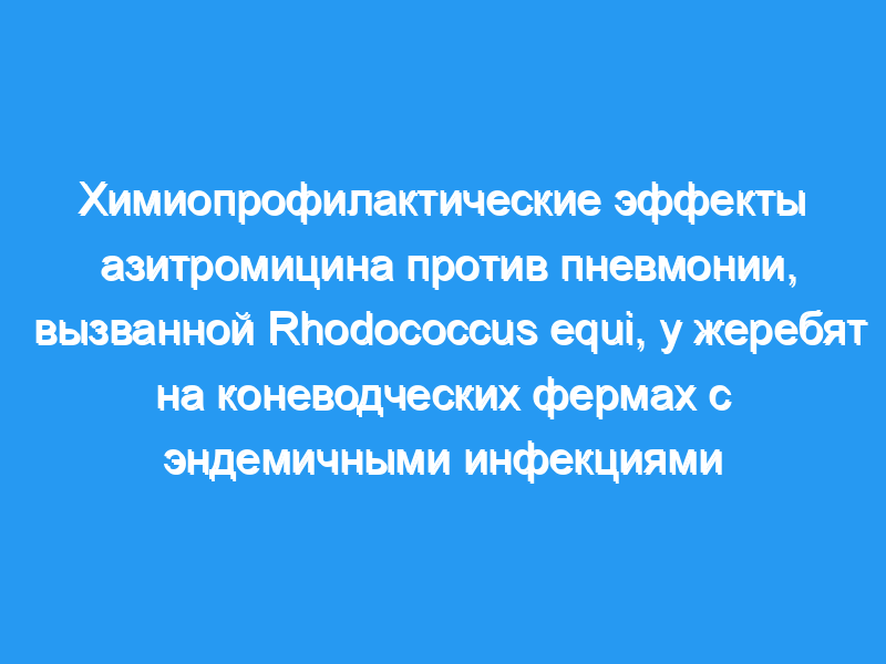 Доля жеребят, пораженных R equi, была значительно выше у контрольных жеребят (20,8%), чем у жеребят, получавших азитромицин (5,3%). Побочных эффектов лечения азитромицином обнаружено не было, и не было существенных различий между группами по МИК азитромицина для изолятов R equi, культивируемых из фекальных или клинических образцов. Выводы и клиническая значимость: Химиопрофилактика азитромицином эффективно снижала совокупную заболеваемость пневмонией, вызванной R equi, среди жеребят на племенных фермах с эндемичными инфекциями R equi. Не было никаких признаков резистентности к азитромицину. Тем не менее, необходимо соблюдать осторожность, поскольку возможно развитие резистентности при широком применении азитромицина в качестве профилактического средства. Необходимы дальнейшие исследования, прежде чем можно будет рекомендовать химиопрофилактику азитромицином для борьбы с инфекциями R equi.< / p>