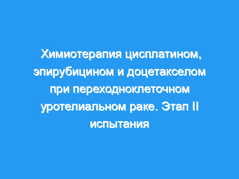 Цисплатин (CDDP), эпирубицин (EPI) и доцетаксел обладают единичной активностью в отношении уротелиальной переходно-клеточной карциномы (TCC). Мы оценили эффективность и токсичность этой комбинации при местнораспространенном или метастатическом уротелиальном ТКК. Пациенты с уротелиальным ТКК, которые ранее не проходили химиотерапию (предшествующая адъювантная химиотерапия и gt, допускается 6 месяцев), имели право на участие в исследовании.