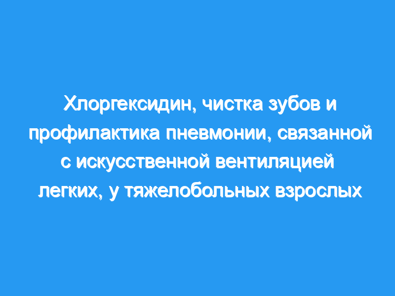 Изучить влияние механического (чистка зубов), фармакологического (местный пероральный хлоргексидин) и комбинированного (чистка зубов плюс хлоргексидин) ухода за полостью рта на развитие пневмонии, связанной с искусственной вентиляцией легких, у тяжелобольных пациентов, получающих искусственную вентиляцию легких.